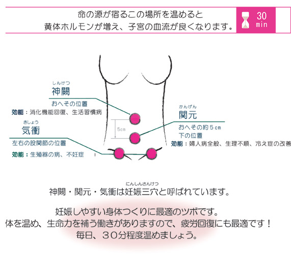 また、新陳代謝を促進し、細胞を活発にし、免疫力を高め、体のバランスを整えます。 肩こり、痛み、血行不良、婦人病、及び老化防止にも効果があります。